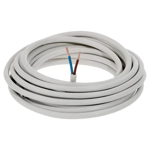 Przewód instalacyjny okragły OMY w kolorze białym. Posiada dwie miedziane żyły o przekroju 1,5 mm2. Charakteryzuje się obciążeniem do 16 A. Moc urządzenia zasilanego napięciem 230 V nie może przekraczać 4840 W, zaś napięciem 400 V - 7920 W. Posiada powłokę polwinitową.