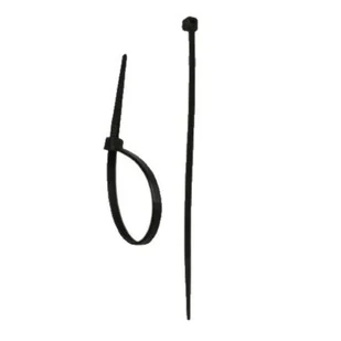 Opakowanie trwałych i solidnych opasek zaciskowych, wykonanych z mocnego tworzywa, przygotowanych w kolorze czarnym.