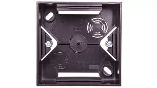 Puszka natynkowa Ospel Impresja PNP-1Y/50 pojedyncza antracyt Specyfikacja: Puszka natynkowa pozwala na przekształcenie dowolnych elementów serii Impresja na wersję natynkową. Stopień ochrony: IP20 Wymiary: kwadrat o boku 8,4 cm, głębokość 3,4 cm Seria modułowa łączników i gniazd podtynkowych, dostępna w tradycyjnej bieli oraz kolorach: