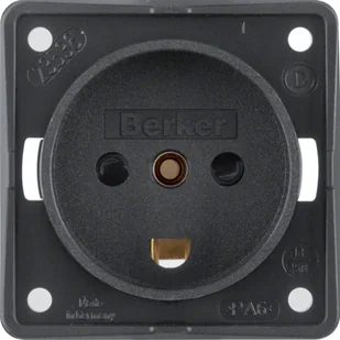 Berker Integro Flow Berker Gniazdo z uziemieniem "Dania" z podwyższona ochroną styków, mechanizm, czarny, mat