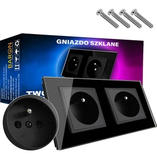 GNIAZDO GNIAZDKO ELEKTRYCZNE SZKLANE Z BOLCEM CZARNE PODWÓJNE SZKŁO