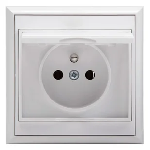 Gniazdo IP44 z serii Luna w kolorze białym, z zaciskami gwintowymi i klapką.