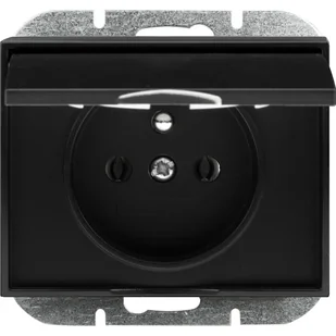 Gniazdo IP44 z serii Onyx w kolorze czarnym matowym, z zaciskami gwintowymi. Gniazdko z kołkiem i z klapką, 16 A, 250~, 2P+Z, IP44.