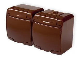 Gniazdo podwójne 2x2P+Z (klapka brązowa) Brązowy Karlik Junior 4GHE-2p IP54