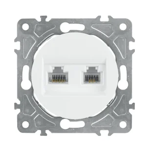 Gniazdo telefoniczno-komputerowe RJ11 + RJ45, białe, OVAL Gniazdo telefoniczno-komputerowe wyposażone jest w dwa moduły jeden RJ11 i jeden RJ45. Gniazdo inte...