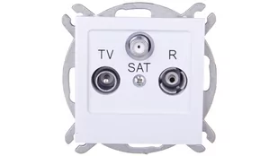 Gniazdo antenowe AS Ospel GPA-GSP/m/00 pojedyncze RTV-SAT przelotowe biały Specyfikacja Gniazda antenowe Współczynnik tłumienia: 1,2dB Stopień ochrony: IP20 Zaciski gwintowe Tworzywo sztuczne, metal Wymiary: kwadrat o boku 7,1 cm Klasyka w nowoczesnym wydaniu - seria osprzętu elektrycznego AS firmy OSPEL, dostępna w tradycyjnej bieli oraz kolorach: srebro, ecru, satyna Light.