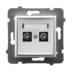 Gniazdo antenowe typu "F" podwójne umożliwia estetyczne podłączenie dwóch niezależnych urządzeń do odbioru telewizji w miejscach gdzie nie występuje rozbudowana instalacja kablowa. Gniazdo antenowe jest przeznaczone do stosowania w antenowych instalacjach indywidualnych i służy do przyłączania urządzeń abonenckich typu tuner satelitarny do tych sieci. Do kompletu wymagana ramka. Można stosować do systemów ramkowych wielokrotnych.