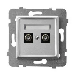 Gniazdo antenowe typu "F" podwójne umożliwia estetyczne podłączenie dwóch niezależnych urządzeń do odbioru telewizji w miejscach gdzie nie występuje rozbudowana instalacja kablowa. Gniazdo antenowe jest przeznaczone do stosowania w antenowych instalacjach indywidualnych i służy do przyłączania urządzeń abonenckich typu tuner satelitarny do tych sieci. Do kompletu wymagana ramka. Można stosować do systemów ramkowych wielokrotnych.