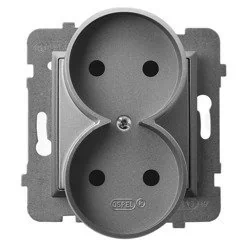 Ospel Gniazdo podwójne bez uziemienia Szary mat Aria - GP-2UR/m/70