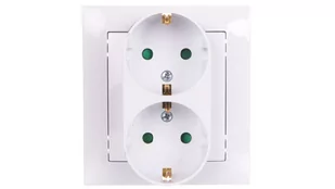 Gniazdo wtyczkowe Ospel Impresja GP-2YSP/00 podwójne z uziemieniem schuko z przesłonami torów prądowych białe Specyfikacja Gniazda wtyczkowe Stopień ochrony: IP20 Prąd znamionowy: 16A Napięcie znamionowe: 250V Tworzywo sztuczne, metal Pazurki / śruby Wymiary: wysokość: 9cm, szerokość: