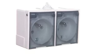Ospel Gniazdo podwójne z uziemieniem, BIAŁY - wieczko w kolorze dymnym GNH-2LZ/00/d