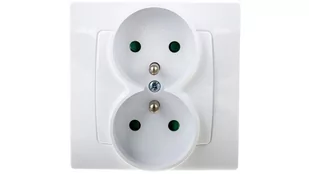 Gniazdo podtynkowe podwójne z uziemieniem z przesłonami torów prądowych.