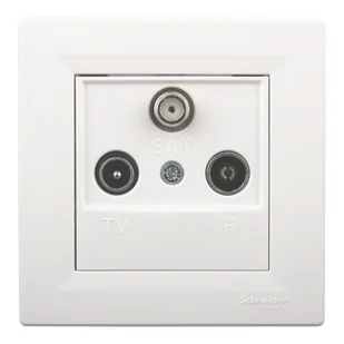 Gniazdo końcowe RTV/SAT serii Asfora, marki Schneider Electric. Gniazdo radiowo-telewizyjne, przeznaczone do montażu podtynkowego w puszce pojedynczej za pomocą śrub lub zatrzasków (pazurków). Wykonane jest z wysokiej jakości tworzywa sztucznego w kolorze białym. Kształt i kolor sprawi, że będzie pasowało do tradycyjnie lub nowocześnie urządzonych pomieszczeń. Stopień ochrony: