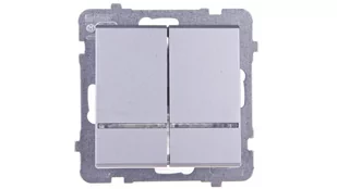 Łącznik podwójny z podświetleniem, wyposażony w 2 przyciski, przeznaczony do żyrandoli (podzielonych na 2 strefy). Posiada możliwość załączania dwóch różnych scen oświetlenia w pomieszczeniu.