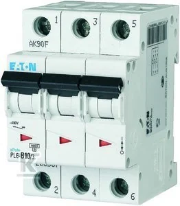 Wyłącznik nadprądowy 6kA PL6-C10/3 o numerze katalogowym 286599 w kategorii Wyłączniki nadprądowe 6kA, Wyłączniki nadprądowe. Produkt wyprodukowany przez markę EATON, seria PL6.