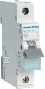 Wyłącznik nadmiarowo-prądowy, 6kA, charakterystyka C, 1-biegunowy, 20A o numerze katalogowym MCN120E w kategorii Wyłączniki nadprądowe 6kA, Wyłączniki nadprądowe. Produkt wyprodukowany przez markę HAGER.
