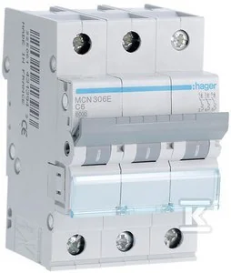 Wyłącznik nadmiarowo-prądowy, 6kA, charakterystyka C, 3-biegunowy, 6A o numerze katalogowym MCN306E w kategorii Wyłączniki nadprądowe 6kA, Wyłączniki nadprądowe. Produkt wyprodukowany przez markę HAGER.