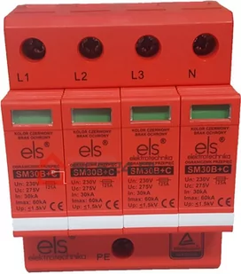 OCHRONNIK PRZEPIĘĆ KLASY B+C 4P PARAMETRY ELEKTRYCZNE: typ sieci: TN i TT napięcie znamionowe AC: 230/400V największe napięcie trwałej pracy AC: 275V znamionowy prąd wyładowczy : 30kA max prąd wyładowczy: