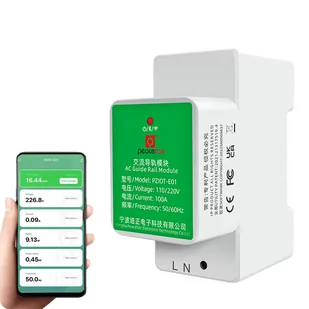 Niekiedy większa ilość dodatkowych funkcji w aplikacji. Funkcje licznika pomiar napięcia pomiar prądu pomiar mocy pomiar współczynnika mocy pomiar częstotliwości historia zużytej energii elektrycznej wskazania chwilowe szeroki zakres pomiarowy przystosowany do montażu na szynie DIN wbudowany przekładnik prądowy CT komunikacja przez sieć WiFi współpraca z aplikacją TUYA lub Smart Life Automatyzacje Możliwość ustawienia automatyzacji z innymi urządzeniami TUYA na podstawie zadanych wybranych parametrów: napięcia prądu energii elektrycznej (chwilowej) współczynnika mocy częstotliwości sieci aktywnego poboru mocy sumy zużycia energii elektrycznej Schemat podłączenia licznika energii. Dane Techniczne: Napięcie: Zakres pomiarowy: