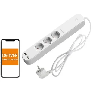 Listwa zasilająca marki DENVER. Inteligentne urządzenie wyposażone w 3 gniazda i 2 złącza USB. Sterowanie listwą odbywa się za pomocą aplikacji mobilnej TUYA Smart. Produkt współpracuje z Amazon Alexa i Google Assistant. Długość przewodu listwy wynosi 1.