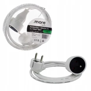 Przedłużacz Biały Pojedynczy 1 gniazdo 1.5m Budowlany Domowy z Uziemieniem