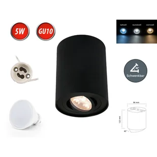 Reflektor sufitowy Braytron w kolorze czarnym Szczegóły produktu1 żarówka Obrót o 45° GU10 5W 360 lumenów neutralna biel 4200K Materiał metal Stopień ochrony IP20 nadaje się tylko do użytku wewnątrz pomieszczeń 125 x 96 mm (wys. x głęb.)