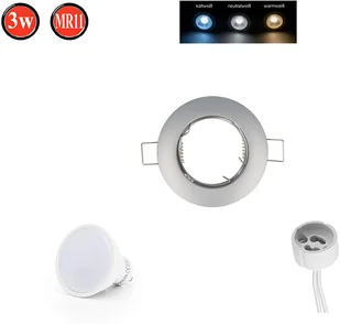 3 / MR16 Rozmiar otworu: Ø65mm Wysokość: 24mmŹródło światła LED: Gniazdo: GU10 Moc: 5 W Natężenie światła: 350 lumenów Temperatura barwowa: