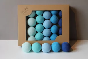 Wariacja w kolorach wody: royal blue, bright blue, aqua, light aqua, baby blue. Zestaw składający się z kolorowych kulek i kabla przeznaczony jest do samodzielnego montażu. Do każdego zestawu dołączona jst instrukcja montażu. Każdy kabel w zestawie zawiera 5 sztuk zapasowych żarówek.