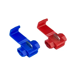 Zestaw szybkozłączek elektrycznych zaciskowych. 2 x PIN. max. 80oC, 400 V. 25 x złączka czerwona (0,5-1,5 mm2) 25 x złączka niebieska (0,75-2,5 mm2). Wymiary: 19 x 31,5 mm. Opakowanie: pudełko z przegródkami
