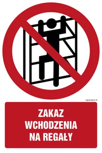 GC059 ZAKAZ WCHODZENIA NA REGAŁY, PN - PŁYTA PCV 1MM; (100X150MM)
