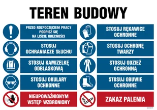 OI016 TEREN BUDOWY, PRZED ROZPOCZĘCIEM PRACY PODPISZ SIĘ NA LIŚCIE OBECNOŚCI, STOSUJ RĘKAWICE OCHRONNE, ST, PN - PŁYTA PCV 1MM; (1000X750MM)