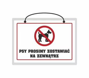 Tabliczka informacyjna z nadrukiem "PSY PROSIMY ZOSTAWIĆ NA ZEWNĄTRZ" wykonana jest z kartonu dwustronnie pokrytego laminatem "z marginesami" - dzięki temu produkt jest odporny na wilgoć i zabrudzenia. Wszystkie oferowane przez nas tabliczki są od razu gotowe do użytku - każda ma sznurek do powieszenia, a otwory dodatkowo posiadają nity, które zabezpieczają tabliczkę przed zerwaniem. Prezentowane wzory mogą nieznacznie odbiegać od gotowych produktów.