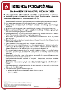 DB012 INSTRUKCJA PRZECIWPOŻAROWA DLA POMIESZCZEŃ WARSZTATU MECHANICZNEGO, HN - PŁYTA ELASTYCZNA 0,4MM; (245X350MM)