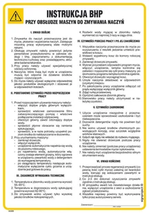 IAG05 INSTRUKCJA BHP PRZY OBSŁUDZE MASZYN DO ZMYWANIA NACZYŃ, PN - PŁYTA PCV 1MM; (245X350MM)