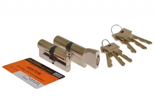 Komplet wkładek bębenkowych LOB Hektor z zabezpieczeniami przeciwwłamaniowymi - wkładka z gałką i wkładka dwustronna otwierane tym samym kluczem Wkładki posiadają zabezpieczenie przeciwrozwierceniowe oraz przeciwwibracyjne. Wkładki zostały przebadana przez Instytut Mechaniki Precyzyjnej w Warszawie zgodnie z obowiązującą normą PN: EN 1303: 2007. Klasyfikacja wkładek: 16010C42 B: Najwyższa trwałość: