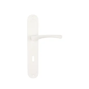 Klamka Eva szyld na klucz w kolorze białym, firmy Domino. Jest to klamka o łagodnie łukowatej formie osadzona na szyldzie i otworem na klucz. Wykonana w stylu klasycznym, przeznaczona jest do drzwi pokojowych. Wysoka jakość materiałów i solidne wykonanie gwarantują wygodę użytkowania produktu przez długi czas. Wykończenie w kolorze białym sprawia, że klamka prezentuje się wyjątkowo elegancko i pasuje niemal do każdego wnętrza.