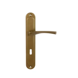 Klamka Eva szyld na klucz w kolorze brązu, firmy Domino. Jest to klamka o łagodnie łukowatej formie osadzona na szyldzie i otworem na klucz. Wykonana w stylu klasycznym, przeznaczona jest do drzwi pokojowych. Wysoka jakość materiałów i solidne wykonanie gwarantują wygodę użytkowania produktu przez długi czas. Wykończenie w kolorze brązu sprawia, że klamka prezentuje się wyjątkowo elegancko i pasuje niemal do każdego wnętrza.