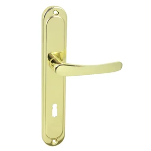 Klamka Nova szyld na klucz mosiądz, firmy Domino. Posiada długi szyld i klasyczny kształt w nowoczesnym, minimalistycznym wzornictwie - dopasujesz ją do wielu współcześnie projektowanych skrzydeł drzwiowych. Klamkę możesz łatwo i samodzielnie zamocować za pomocą odpowiednich wkrętów. Posiada otwór na klucz. Wykonana w stylu uniwersalnym, przeznaczona jest do drzwi pokojowych.