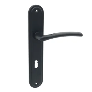 Domino Klamka Presto na klucz czarna Klamka firmy Domino wykonana z aluminium, charakteryzuje się eleganckim, matowym wykończeniem w kolorze czarnym. Przeznaczona jest do drzwi wewnętrznych, łącząc nowoczesny design z trwałością i wysoką jakością wykonania.