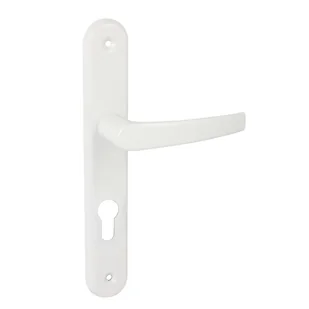 Klamka z szyldem Econom - biała, marki Domino. Jest to klamka w stylu uniwersalnym przeznaczona do mocowania w drzwiach wewnętrznych. Dzięki wysokiej jakości i precyzji wykonania, klamka doskonale się prezentuje podnosząc walory estetyczne każdych drzwi. Posiada szyld z otworem na wkładkę bębenkową. Komplet zawiera: