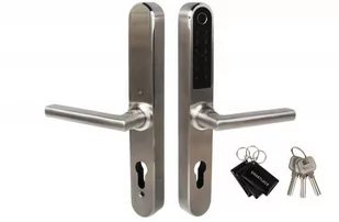 możliwość samodzielnego przełożenia rękojeści - wąski szyld - tylko 38 mm, daje możliwość zastosowania również w drzwiach aluminiowych - sposoby otwierania: odcisk palca, zbliżeniowo (karta, brelok) Mifare 13,56 MHz, do 150 użytkowników; kodem PIN z klawiatury, z aplikacji TT Lock, kodem PIN otrzymanym zdalnie od administratora klamki - darmowa, intuicyjna, aplikacja w języku polskim - możliwość zarządzania wieloma klamkami z poziomu 1 konta - zdalne wysyłanie kodów ograniczonych czasowo, kodów działających na zadaną ilość otwarć, kodów działających w określonych dniach tygodnia - alarm o niskim poziomie baterii - 3 klucze do awaryjnego otwierania w komplecie - w przypadku całkowitego rozładowania możliwość podłączenia zewnętrznego zasilania (np. Powerbank) przez gniazdo micro USB.