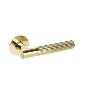 Klamka Livia FIT na rozecie okrągłej złota. ZAPRASZAMY DO NEGOCJACJI CENY TEJ KLAMKI!!! 666 295 925 Seria produktów FIT firmy VDS to delikatniejsze rozety, tylko 6mm grubości zamiast 10mm w produktach standardowych. Polecamy gorąco. Klasa 4 - wg Polskiej normy Pn-en 1906: 2003 - klamka może być stosowana w obiektach użyteczności publicznej, najwyższa klasa odporności.