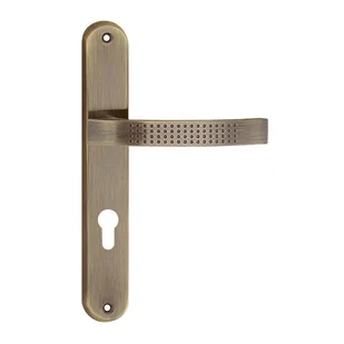 Klamka z szyldem Astra firmy Metal-Bud. Jest to klamka o prostej formie osadzona na szyldzie z otworem na wkładkę bębenkową i otworami montażowymi z rozstawem 72 mm. Wykonana w stylu uniwersalnym, przeznaczona jest do drzwi pokojowych. Wysoka jakość materiałów i solidne wykonanie gwarantują wygodę użytkowania produktu przez długi czas. Wykończenia w kolorze patyny sprawiają, że klamka prezentuje się wyjątkowo elegancko.