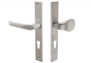 Klamka drzwiowa z pochwytem wykonana ze znalu - stopu cynku i aluminium, stosowana w drzwiach aluminiowych, PVC i wszędzie tam, gdzie z przyczyn kontrukcyjnych wymagany jest wąski szyld klamki (32 mm). Przeznaczona do drzwi o grubości maksymalnej 80 mm. Podana cena obejmuje pochwyt na stronę zewnętrzną i klamkę na stronę wewnętrzną drzwi.