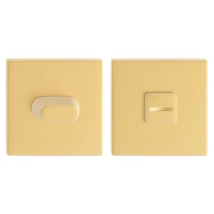 Rozeta kwadratowa Zumba w kolorze złoty mosiądz dla drzwi z zamkiem na blokadę łazienkową. Pasuje do klamki Zumba złoty mosiądz. Rozeta w estetyczny sposób uzupełni wygląd nowych drzwi jak również odświeży nasze stare skrzydło wewnątrz mieszkania lub domu. Dzięki rozecie w łatwy i poręczny sposób otworzysz lub zamkniesz blokadę w drzwiach łazienkowych. Rozetę możesz zamontować za pomocą wkrętów znajdujących się w zestawie.