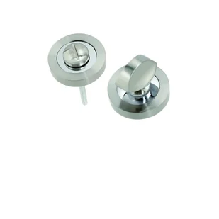 Rozeta w kolorze nikiel satyna na drzwi z zamkiem na blokadę łazienkową. Pasuje do klamki Jula nikiel satyna. Rozeta w estetyczny sposób uzupełni wygląd nowych drzwi jak również odświeży nasze stare skrzydło wewnątrz mieszkania lub domu. Dzięki rozecie w łatwy i poręczny sposób otworzysz lub zamkniesz blokadę w drzwiach łazienkowych. Rozetę możesz zamontować za pomocą wkrętów znajdujących się w zestawie.