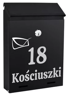 18 x 2 cm Rozstaw otworów montażowych 10 x 12 cm Stal galwanizowana malowana proszkowo Odporność na warunki atmosferyczne Montaż wewnątrz i na zewnątrz Zamykana na klucz W komplecie 2 kluczyki i zestaw montażowy Po zakupie podaj nam wytyczne do personalizacji Twojej skrzynki Po dokonanym zakupie w wiadomości do sprzedającego proszę podaj: wybrany wzór czcionki, napis do wykonania. (przykład: wzór2, Kościuszki 18). Napis zostanie wykonany dokładnie wg wytycznych z wiadomości do sprzedającego. Napisy mogą mieć same wielkie litery np.