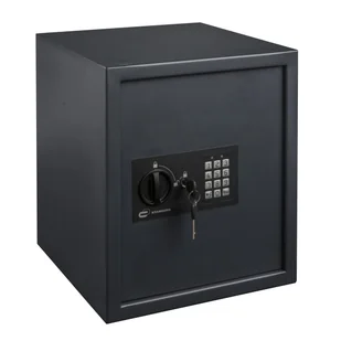 Sejf z kodem elektronicznym 40 x 35 x 36 cm 40 l Standers wyposażony w elektroniczny zamek cyfrowy, zapewniający wysoki poziom ochrony przechowywanych przedmiotów. W zestawie znajdują się dwa zapasowe klucze na wypadek awarii. Idealny do przechowywania dużych i wartościowych przedmiotów, takich jak: dokumenty formatu A4, segregatory, laptop, aparat fotograficzny, telefon lub tablet. Elektroniczne otwieranie za pomocą systemu kodu użytkownika i kodu głównego pomoże użytkownikowi w udostępnianiu i zarządzaniu dostępem do sejfu.