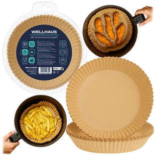 200x Wkłady Wellhaus do frytkownicy Air Fryer Ø 20 cm Czysta frytkownica bez szorowania – codzienna wygoda w Twojej kuchni! Zestaw 200 jednorazowych wkładów papierowych marki Wellhaus to idealne rozwiązanie dla wszystkich miłośników gotowania w frytkownicy powietrznej. Wkłady zapobiegają przywieraniu jedzenia, zatrzymują tłuszcz i resztki potraw, a przy tym znacznie ułatwiają czyszczenie urządzenia. Wykonane z naturalnej, biodegradowalnej celulozy z silikonową powłoką, są całkowicie bezpieczne dla zdrowia i przyjazne środowisku.