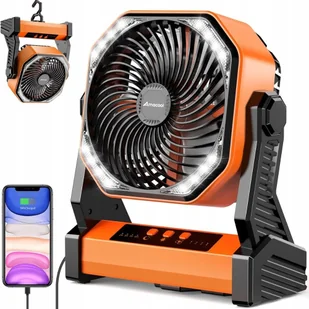 AMACOOL Wentylator kempingowy 8” z latarką LED i akumulatorem 20000 mAh